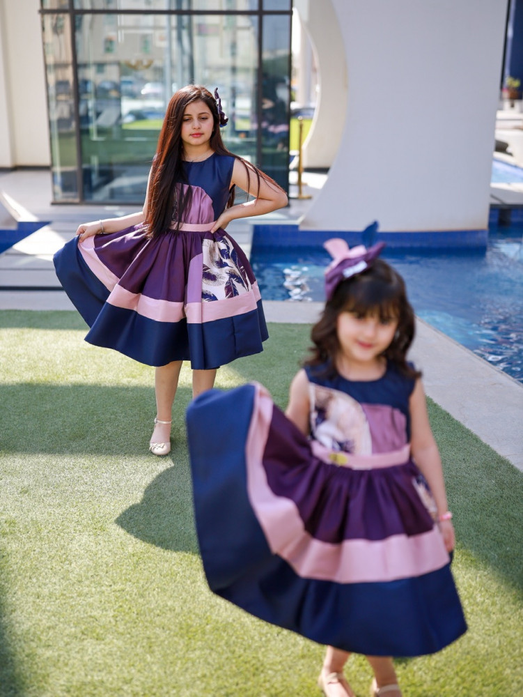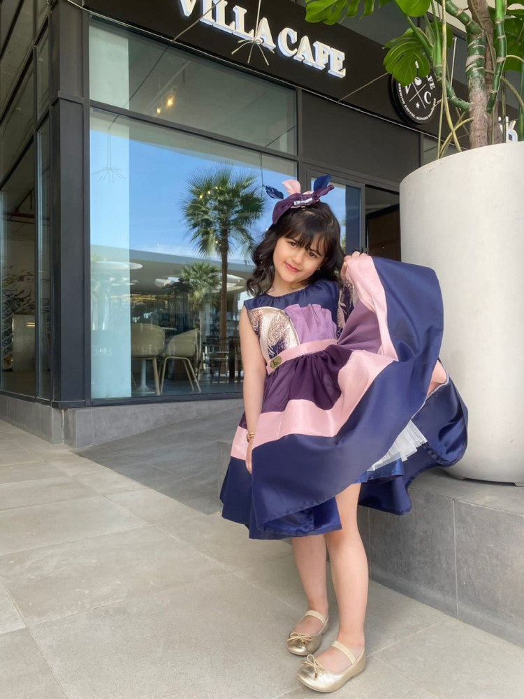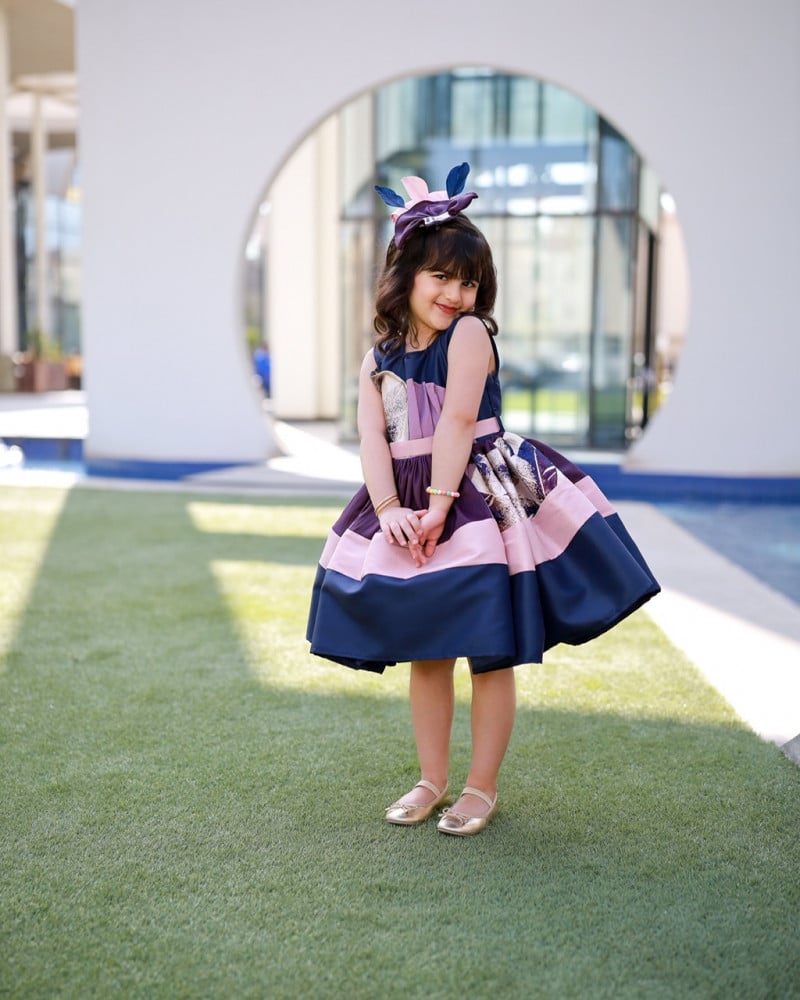 ✨ ألوانه المتداخلة – الكحلي الراقي، الوردي الناعم، والطبعات الفريدة – تخلق فستانًا يخطف الأنظار منذ اللحظة الأولى!